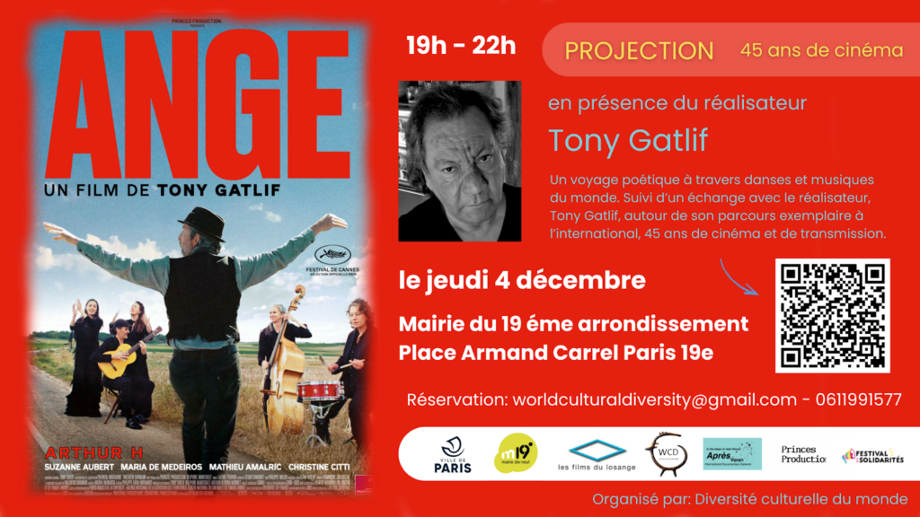 Les célébrations continuent le jeudi 4 décembre 2025 avec le film “Ange” de Tony Gatlif, en sa présence ainsi que celle d’Alain Weber, compositeur, directeur artistique de la Philharmonie de Paris et de la Cité de la musique. La projection sera suivie d’un débat autour  de l’importance de la musique dans les films de Tony Gatlif.