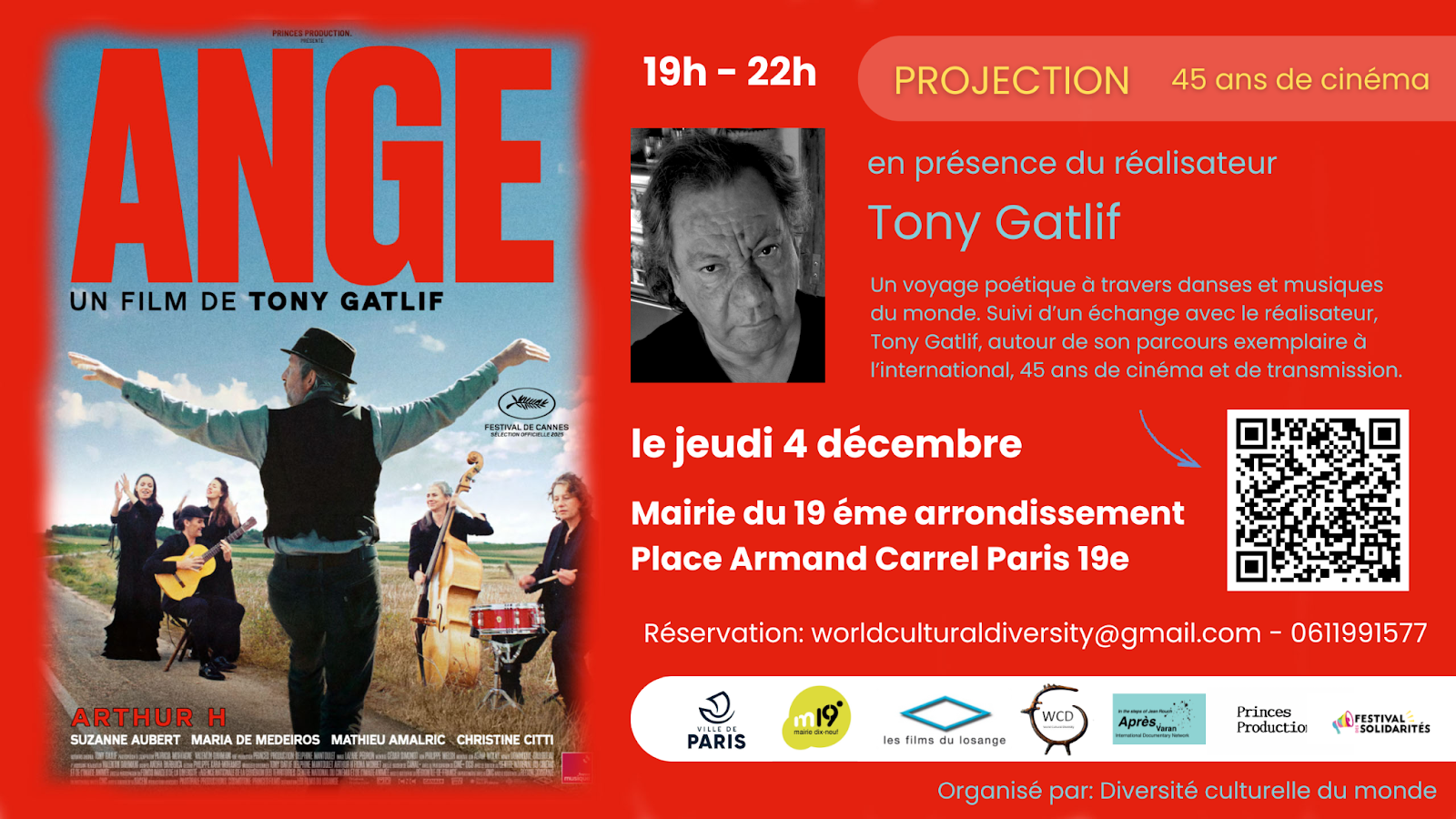 Retrouvons nous le 4 décembre 2025 à 19h, à la salle de mariage de la mairie du 19ème arrondissement pour se rassembler autour de son parcours cinématographique inspirant, qui a conquis la France et le monde pendant 45 ans.