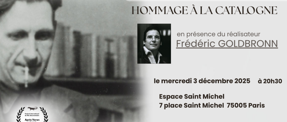 La 10ᵉ édition du festival Après Varan – Sur la route de Jean Rouch s’ouvre avec la projection de son dernier film, Hommage à la Catalogne. Frédéric Goldbronn accompagnera l’ouverture du festival.