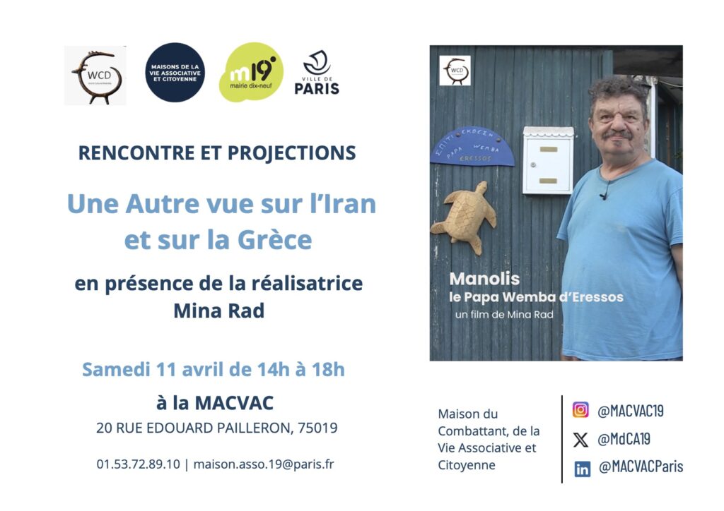 Une autre vue sur l’Iran et la Grèce : Contes Persans, Jean Rouch en Iran et Madame et M Mafi et Manolis Papa Wemba d’Eressos : trois films de Mina Rad le 11 avril 2026 à la Macvac